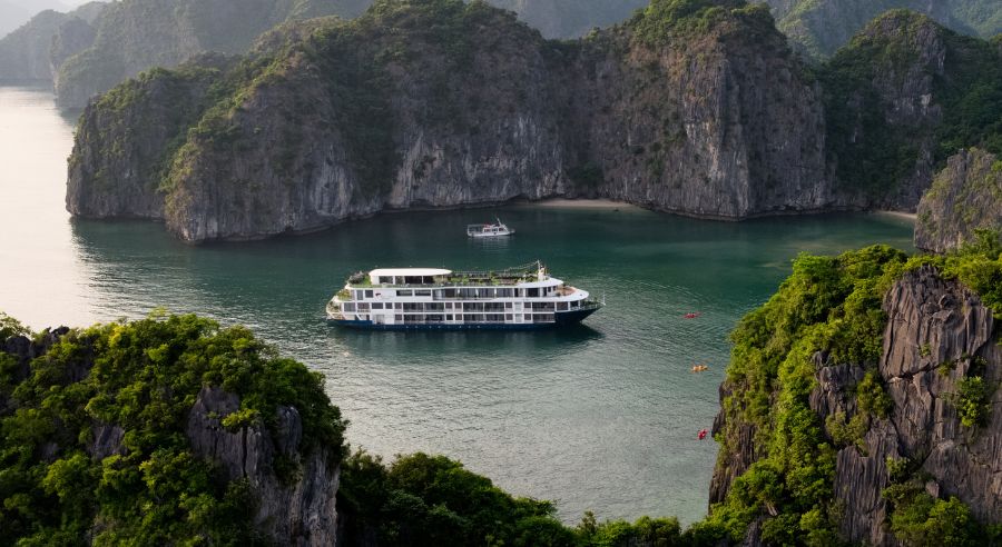 Mon Cheri Cruise is one of the newest luxurious cruises in Halong Bay which features the latest and fastest non wooden vessel in Lan Ha Bay. However, it rivals luxury lines when it comes to a perfect blend of adventure and luxury. The 5-star vessel hosts 18 stylish, comfortable cabins with minimum size from 35sqm that are designed follow classic European and rustic essence of Vietnamese styling.
