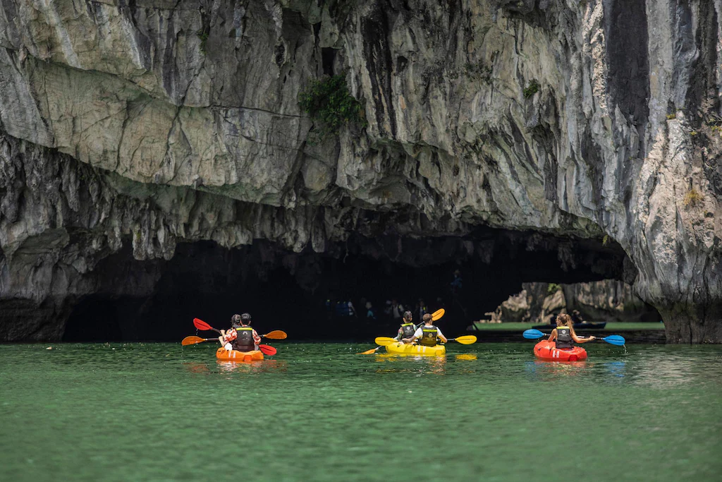 Kayaking or bamboo boat experience at Luon Cave lagoon